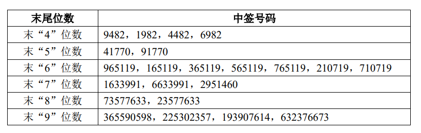 双欣环保(001369)公布网上发行中签结果。凡参与本次网上发行的投资者持有的申购配号尾数与以下号码相同的,则为中签号码。中签号码共有286503个,每个中签号码只能认购500股公司股票。