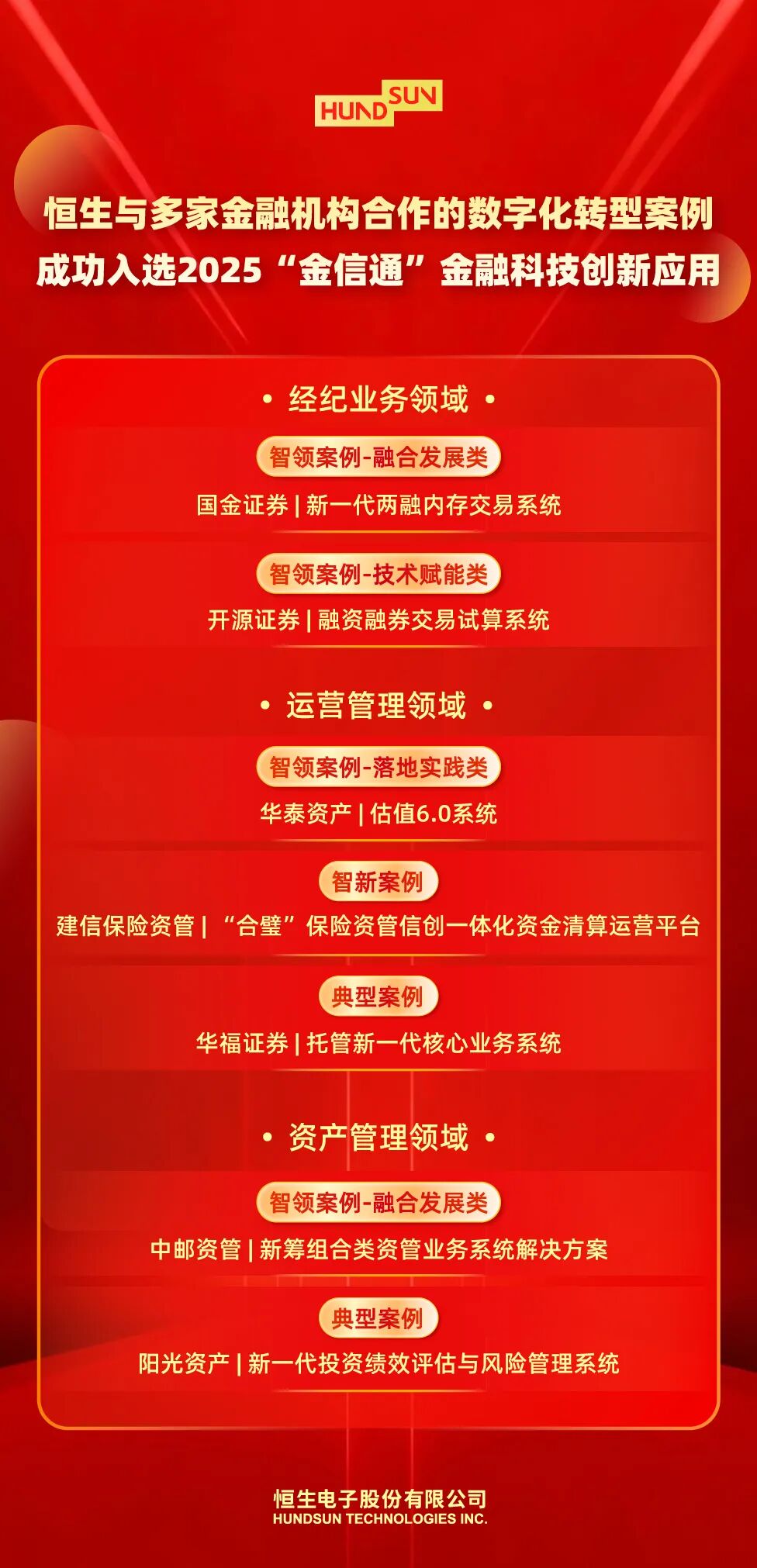 入选2025“金信通”金融科技创新应用,恒生电子多个数字化转型案例获认可!
