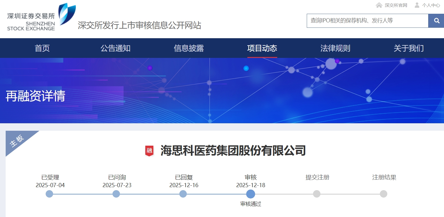 日前,海思科(002653)向特定对象发行股票的申请获得深圳证券交易所上市审核中心审核通过。