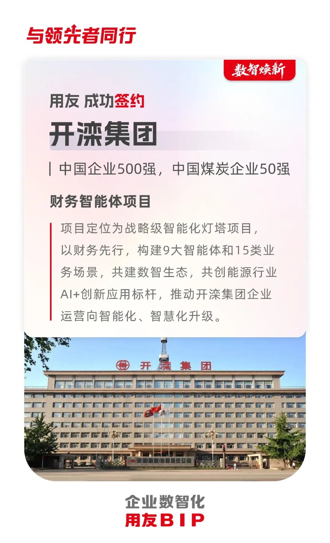 再签!开滦集团携手用友构建财务智能体,共创能源行业“AI+”创新应用标杆
