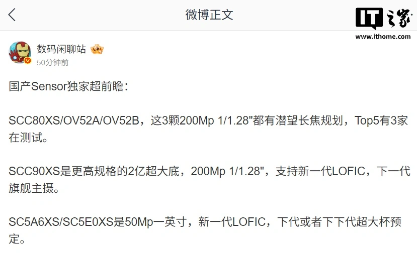 IT之家 12 月 23 日消息,博主 @数码闲聊站 今日爆料了多款国产旗舰手机影像传感器的后续规划: