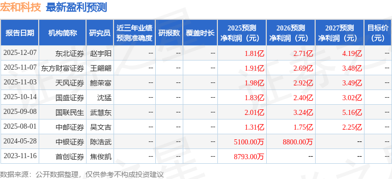 最新盈利预测明细如下: