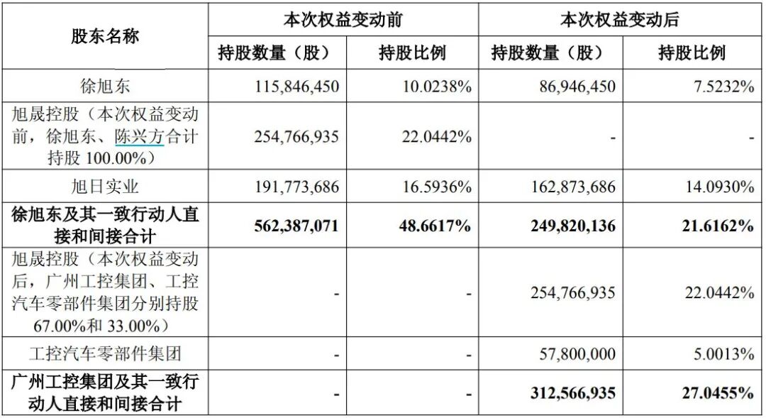 交易方案由两部分组成,一是广州工控集团及其全资子公司广州工控汽车零部件集团有限公司(以下简称工控汽车零部件集团)将从徐旭东及其配偶手中受让旭晟控股100%股权。二是工控汽车零部件集团还将受让旭日实业及徐旭东直接持有的上市公司部分股份。