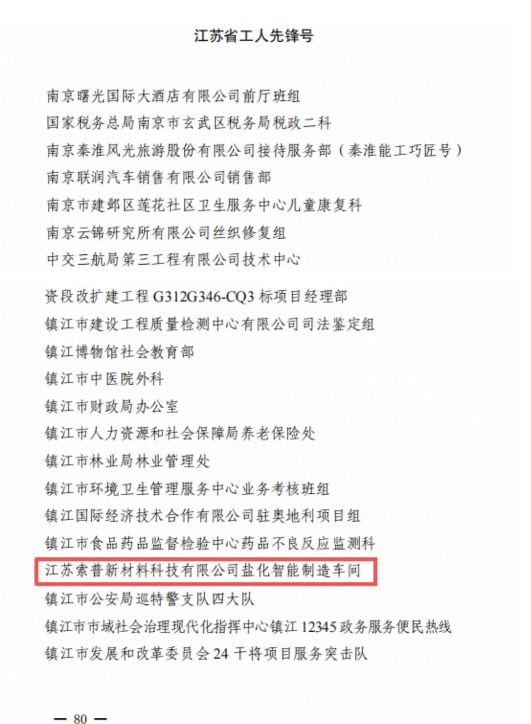 索普新材料盐化智能制造车间荣获“江苏省工人先锋号”称号