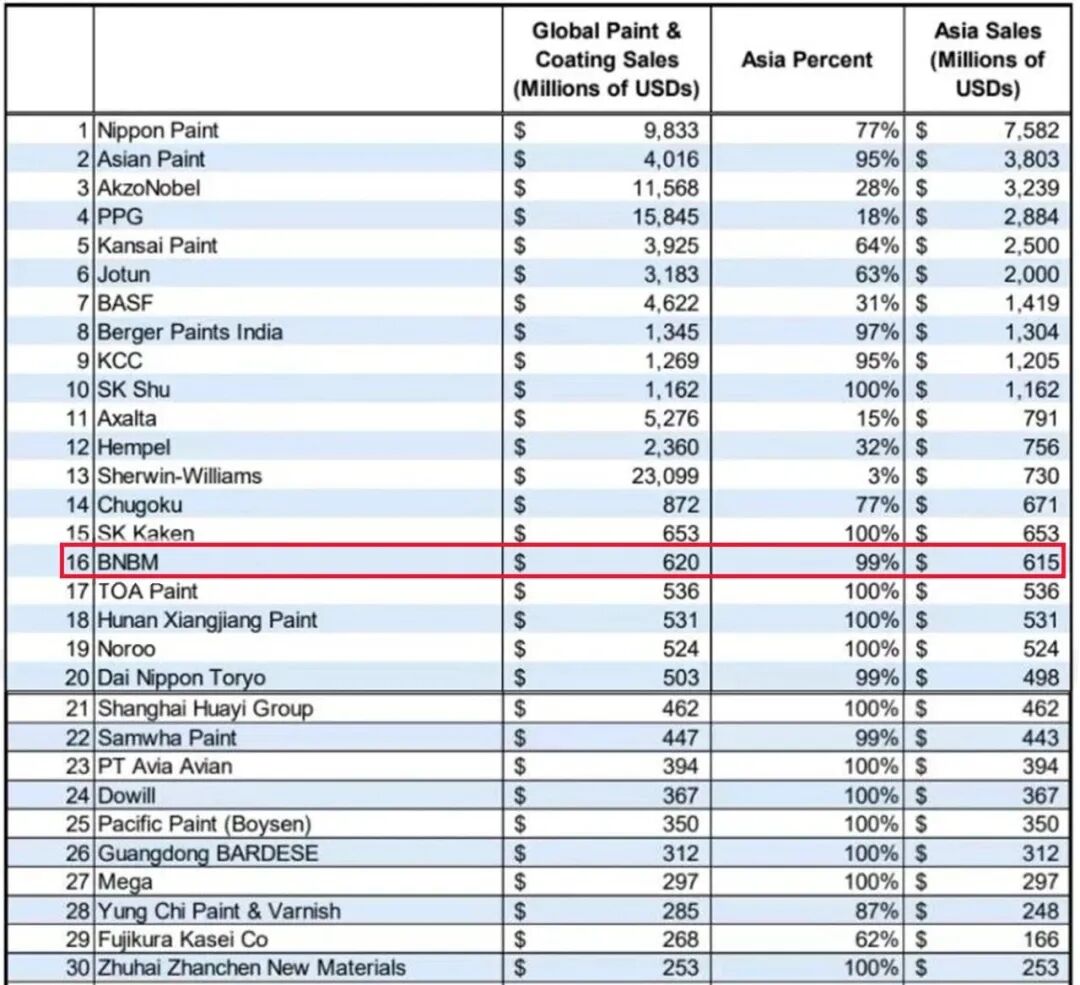 12月4日,由亚洲涂料油墨联合会主办的2025亚洲涂料峰会暨ACIF年会在新加坡顺利召开。大会发布了亚洲涂料行业TOP30榜单,北新建材(000786)上榜该榜单,位列第16名。北新涂料董事长陈燕代表北新建材出席颁奖仪式并发表主题演讲。榜单中跻身亚洲前20强的中国涂料企业仅三家,北新建材与三棵树(603737)、湘江涂料共同入选,彰显了中国头部涂料企业的综合实力与国际行业认可度。