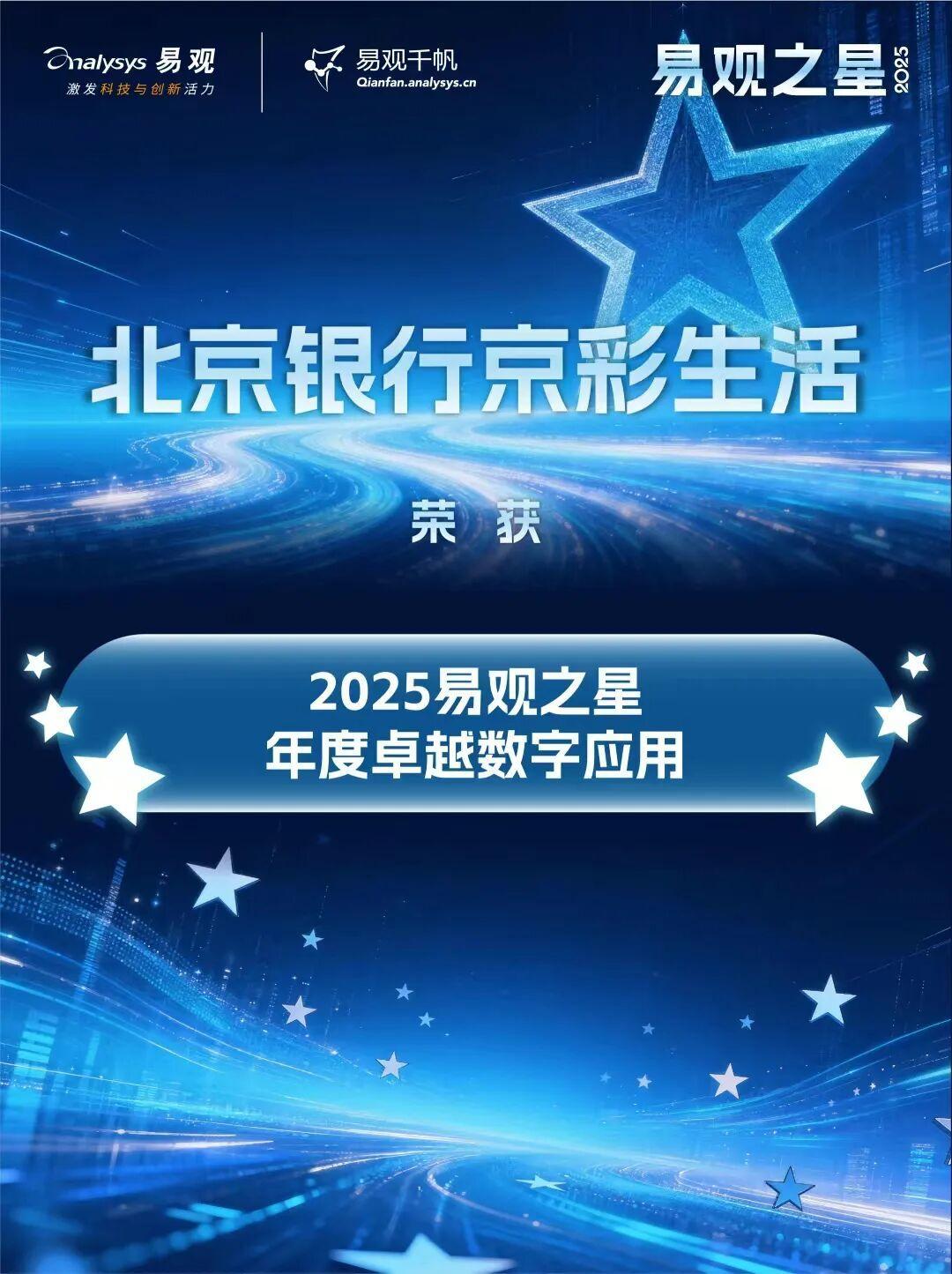 第十六届“易观之星”年度奖项以“传承数智经典,智创产业新篇”为主题,全面聚焦驱动产业未来的两大核心变量——AI的深度业务融合与用户体验的极致科学度量。北京银行依托区域生态与智慧服务构建差异化能力,获得2025“易观之星”年度卓越数字应用奖项。