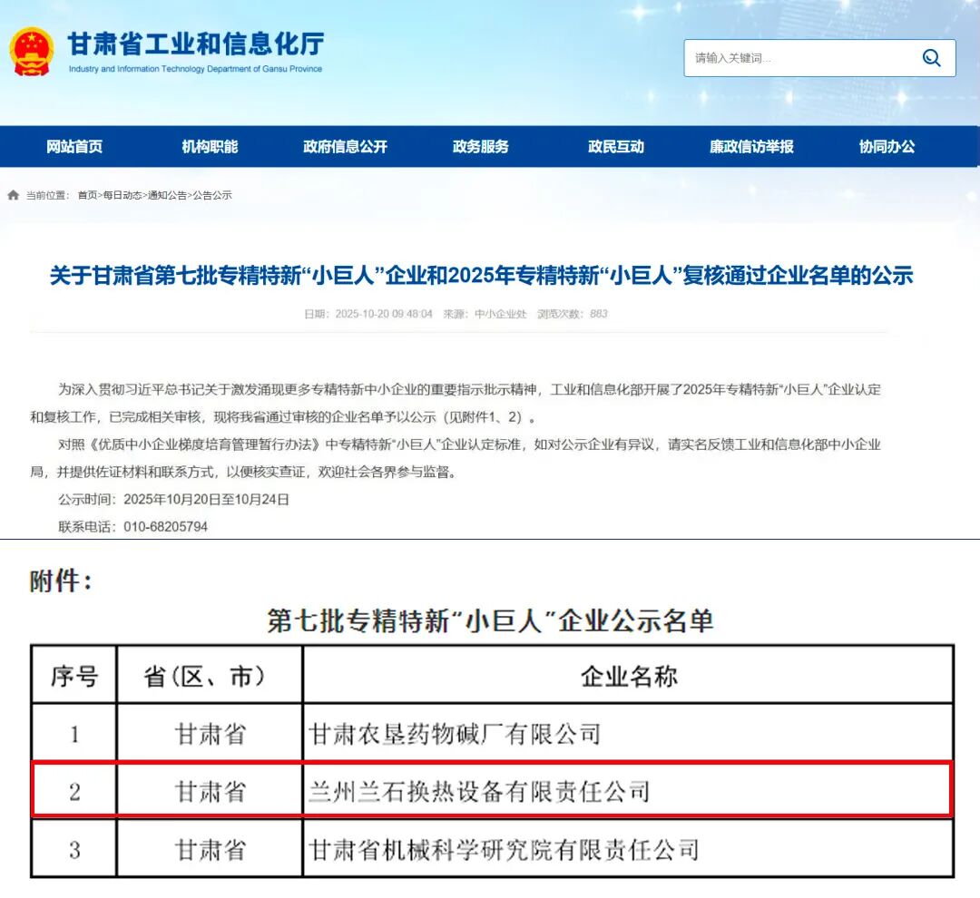 兰石重装换热公司入选国家级专精特新“小巨人”企业