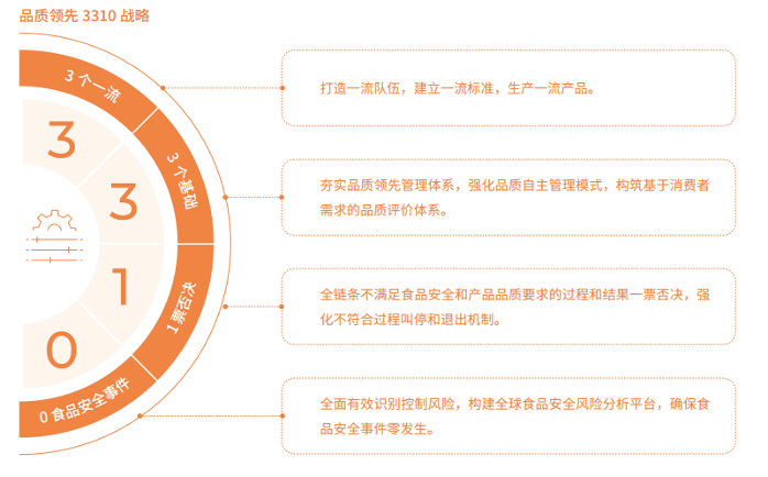 诸如此类的奖项不胜枚举。食品安全向来是国内外ESG评级机构最为关注的议题之一,也是消费者最为关注的内容。作为A股饮料乳品行业绝对龙头,伊利股份已连续多年发布ESG报告,在2024年度ESG报告中,公司表示,致力生产100%用心、100%安全、100%健康的产品,制定“品质领先3310战略”,从聚焦食品安全风险管理到关注消费者品质体验,从卓越质量管理到引领消费者品质观,由质量管理向品质管理升级,整合全球优质资源,持续升级全球质量管理体系,将严苛的质量管控标准贯穿于全球产业链,保证食品安全事件零发生及领先的产品品质。