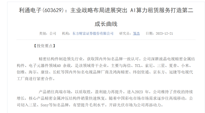 判决书并未披露相关人员的姓名。不过,券商中国记者注意到,原东方财富(300059)证券电子首席分析师邹杰,为上海交通大学工学博士,曾在2023年发布利通电子(603629.SH)相关研报。2023年,利通电子股价年度涨幅高达155.37%。
