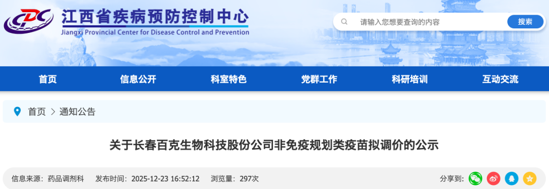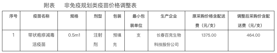 12月23日,江西省疾控预防中心网站显示,长春百克生物科技股份公司(下称“百克生物”,证券代码:688276)递交调价函,将带状疱疹减毒活疫苗(规格:0.5ml)价格从原采购价(含配送费)1375元/支降至464元/支,即一针降价911元,价格下调约66.25%。