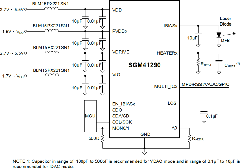 SGM41290具有过温告警、Heater开路/短路告警以及IBIAS开路/短路告警等功能,并通过推挽输出的LOS引脚通知主机进入中断。