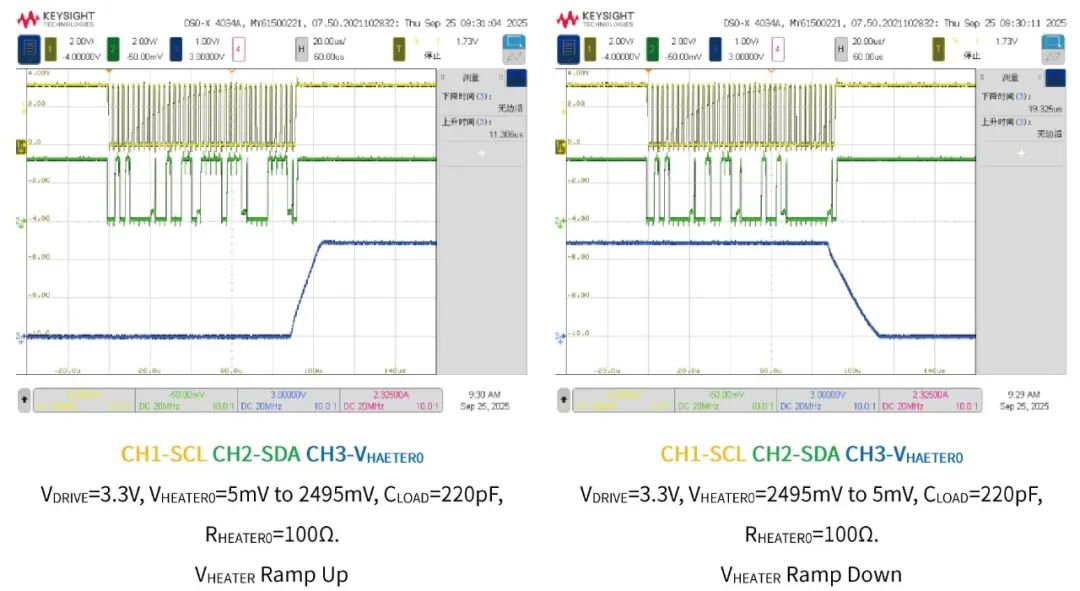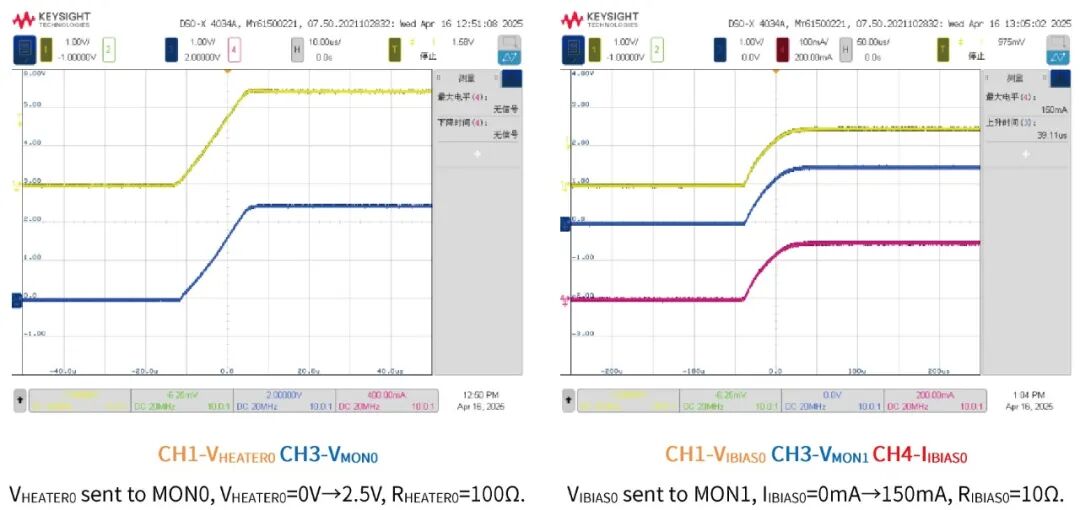 图7 通过MONx引脚监测加热器电压和偏置电流的单调变化过程