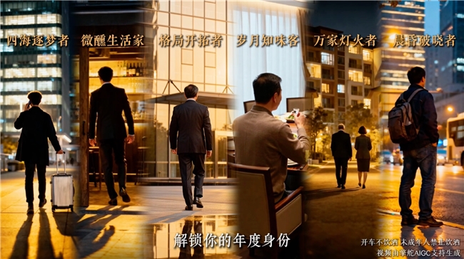 其中,擎舵AIGC生成的年度回顾视频,核心亮点在于以用户真实生活轨迹为蓝本,通过AI技术实现多面人生的情感化叙事——既贴合不同人群的生活场景与精神诉求,又将茅台酱香酒“岁月留香”的品牌内核自然植入,让每类用户都能在视频中看到自己的影子,从而强化情感共鸣与品牌认同。
