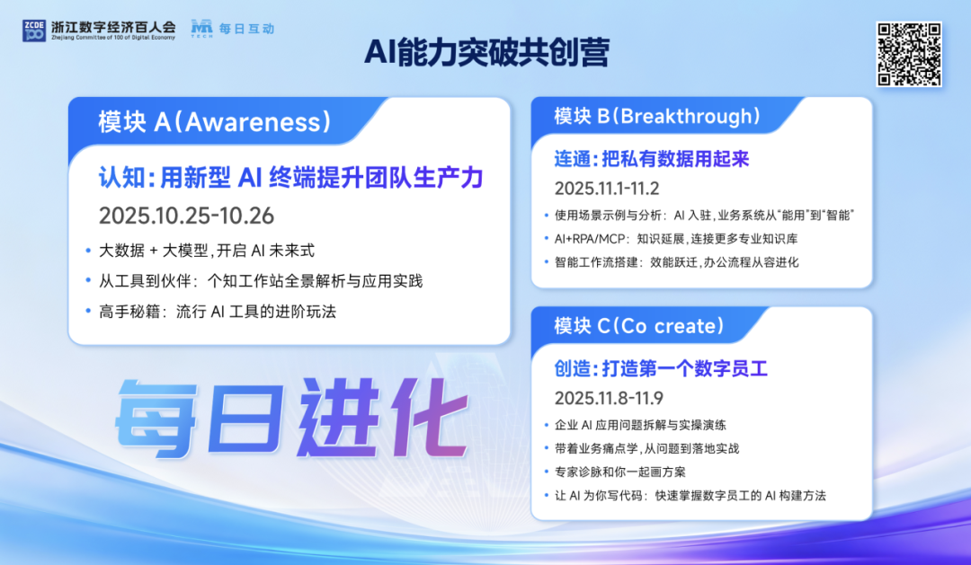 我们认为,AI应用的未来应该是普惠的和持续进化的。因此,我们倡导“协同共创,每日进化”。在“智能工作站”的坚实基础上,我们开放了低门槛的开发接口,并搭建了GAI Store(应用商店)。目标是让业务人员即使没有深厚的编程背景,也能将自己清晰的业务逻辑“描述”出来,并转化成自动化的智能工作流或专属智能体(Agent)。为此,我们定期举办“共创营”,用6天时间,引导合作伙伴从认知到实践,共同基于其私有数据创造出可落地的AI应用。我们希望通过这些努力,培育一个开放共享、持续迭代的AI应用创新生态。