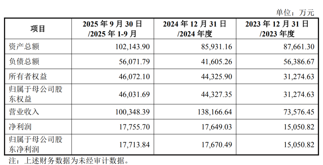 数据显示,2023年、2024年及2025年前三季度,众联世纪分别实现营业收入7.36亿元、13.82亿元、10.03亿元,归母净利润分别为1.51亿元、1.77亿元、1.77亿元。