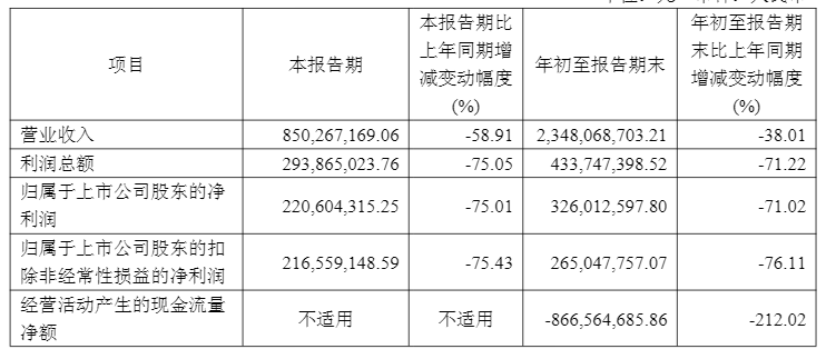 业绩方面,今年前三季度,公司实现营业收入23.48亿元,同比下降38.01%;实现归母净利润3.26亿元,同比下降71.02%。
