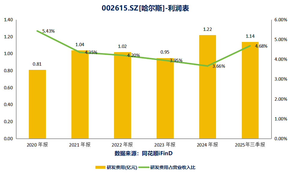 2025年前三季度,哈尔斯研发投入增至1.14亿元,同比增长17.45%,占营业收入的4.68%,重点投向智能杯壶技术、新型环保材质应用及高端产品工艺升级领域。截至2025年6月末,公司已主导或参与制修订各级标准40项,其中国家标准6项,以标准制定者身份定义行业技术标杆,真空保温长效技术、轻量化材质工艺、智能传感集成等核心技术实现批量应用,产品保温性能与使用便捷性行业领先。