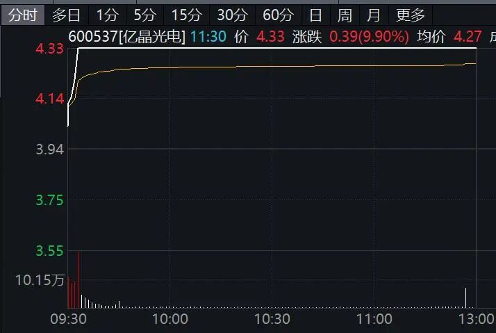 光伏设备概念股早间大幅走强,板块指数高开高走,盘中放量涨逾4%,创1个多月来新高,半日成交超昨日全天成交。亿晶光电(600537)(600537)开盘仅约3分钟垂直涨停,协鑫集成(002506)(002506)等也直线快速封板。