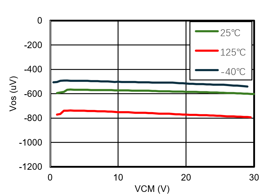 如上右图所示,TPA277x系列内部只采用PNP管,通过内部电荷泵电路生成高于供电电源的电压,使输入对管始终能正常工作,如下图所示,全共模范围内输入失调电压无非线性跳变。尤其在光伏逆变并网侧,检测逆变电流信号时,保证采样信号不失真。