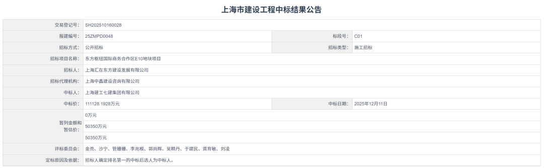 3、东方枢纽国际商务合作区E10地块项目【中标额11.1亿】