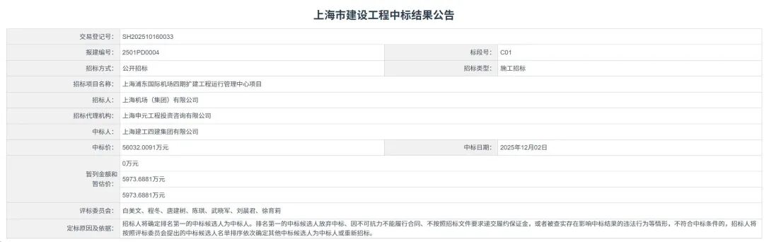 5、上海浦东国际机场四期扩建工程运行管理中心项目【中标额5.6亿】