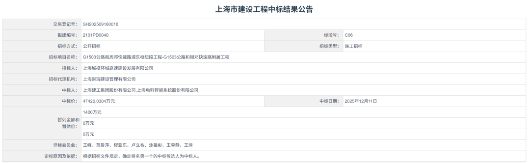 6、G1503公路和周邓快速路浦东枢纽段工程-G1503公路和周邓速路附属工程【中标额4.7亿】