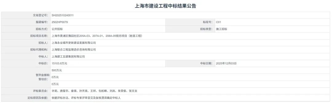 10、上海市黄浦区豫园社区205A-03、207A-01、208A-05街坊项(桩基工程)【中标额1.5亿】