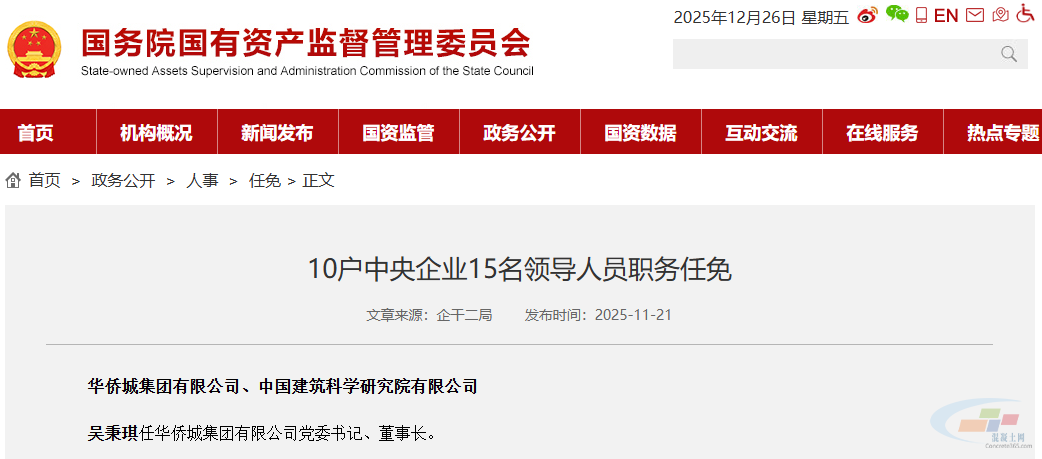 近日,国务院国资委发布10户中央企业15名领导人员职务任免,其中包含吴秉琪任华侨城集团有限公司党委书记、董事长。
