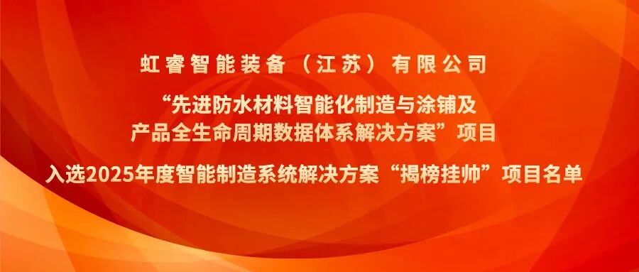 近日,工业和信息化部公布2025年度智能制造系统解决方案“揭榜挂帅”项目名单,由东方雨虹(002271)旗下虹睿智能装备(江苏)有限公司(以下简称“虹睿智能装备”)申报的“先进防水材料智能化制造与涂铺及产品全生命周期数据体系解决方案”项目成功入选。