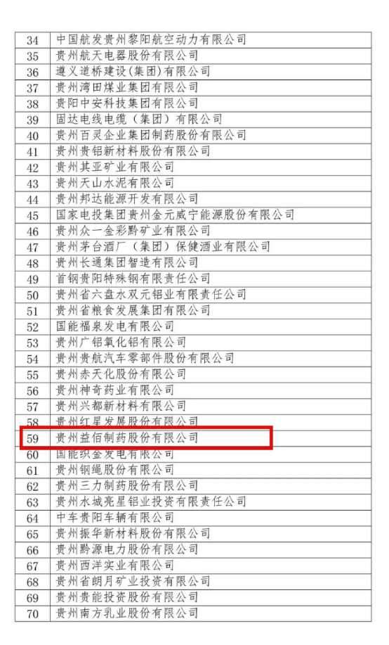 益佰制药实力彰显再度入选贵州企业百强系列榜单