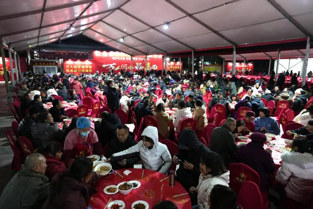 二十三年间,风雨无阻的坚守凝结了许多动人片段:有凌晨三点运送物资的寂静深夜;有大雪纷飞中照常开灶的凛冽清晨;也有看到万人同食时的无声感动。2025年活动前夕,湖南农业集团还以无人机光影秀的创新形式,在长沙夜空呈现“12.26裕湘邀你韶山吃面”的温情邀约,让红色约定传遍三湘大地。