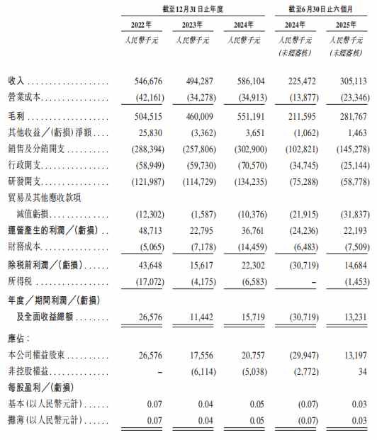 从财务表现来看,公司近年来营收整体呈上升态势,2022年至2025年上半年分别为5.47亿元、4.94亿元、5.86亿元及3.05亿元(单位为人民币,下同);同期净利润分别为2,657.6万元、1,144.2万元、1,571.9万元及1,323.1万元,利润规模相对有限且波动明显。