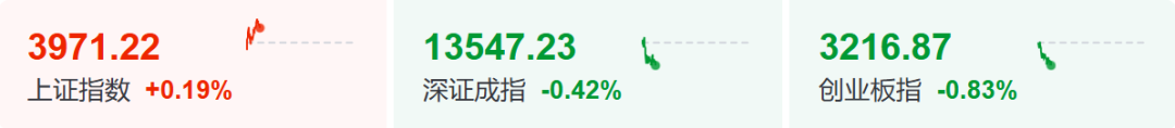 12月29日,A股三大指数开盘涨跌不一,上证指数高开0.02%,深证成指平开,创业板指跌0.19%。开盘后,市场持续分化。截至发稿,上证指数涨0.19%,创业板指跌0.83%。