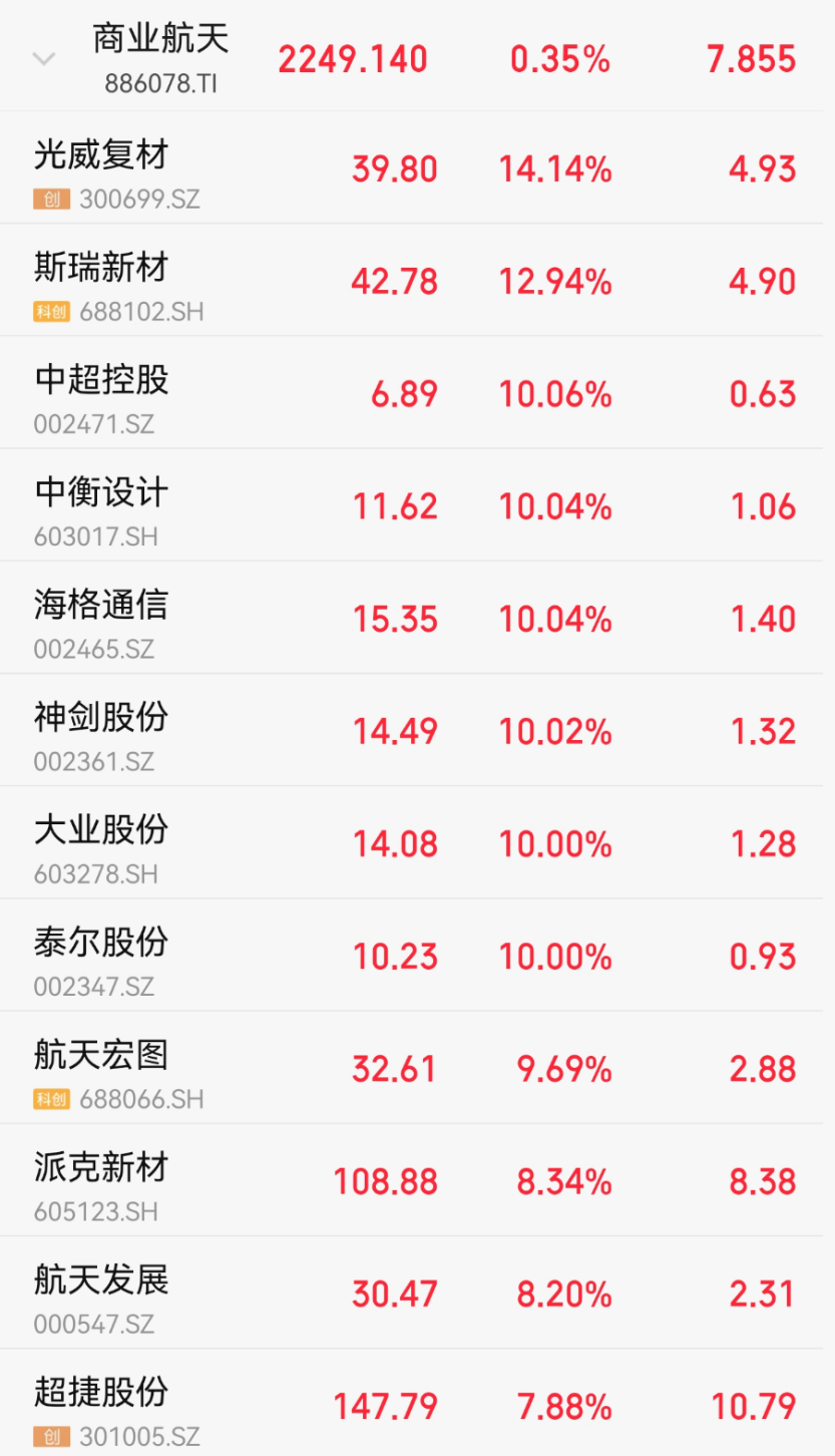 商业航天板块持续活跃