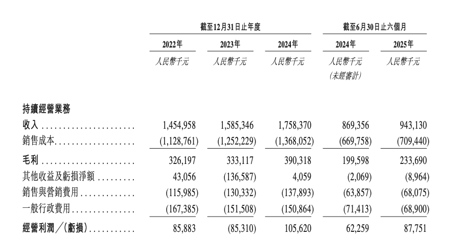 2022年、2023年、2024年以及截至2024年及2025年6月30日止六个月,瑞派的总收入分别为14.55亿元(人民币)、15.85亿元、17.58亿元、8.69亿元及9.43亿元。
