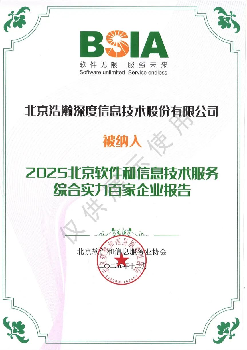 双榜闪耀!浩瀚深度公司入选2025北京软件和信息服务业综合实力百家企业和2