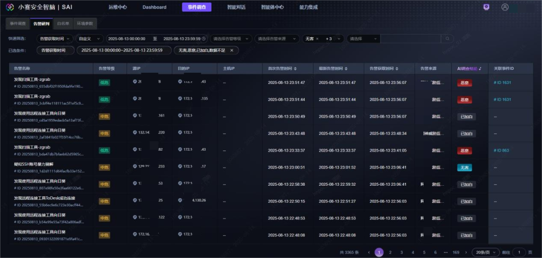 ◎小赛安全智脑(SAI)针对海量告警进行可信分析与安全事件研判