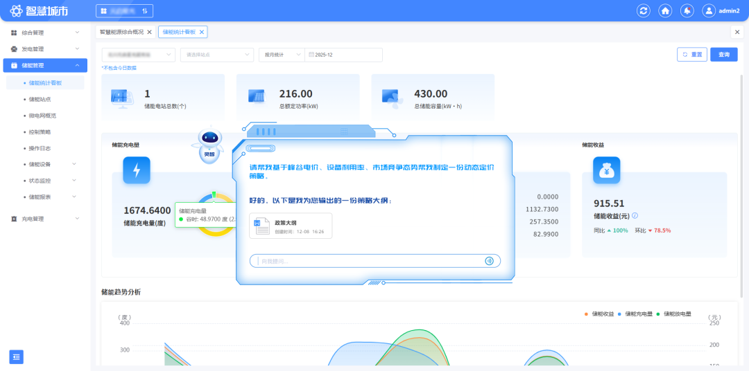 精准预测光伏出力与充电负荷,动态平衡光储充运行,实现最大化绿电消纳;基于峰谷电价、设备利用率等制定动态定价策略,结合用户画像提供个性化充电服务,提升运营收益与车位周转率。