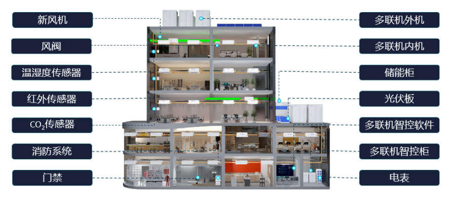 目前,格力多联机智控系统产品已广泛应用于办公楼、学校、商场等多个行业场景,并逐步推广至暖通、楼宇、园区等全建筑领域,为行业节能改造提供了标准化、智能化的系统解决方案,有力支撑国家建筑节能与绿色发展战略,助推“双碳”目标稳步实现。