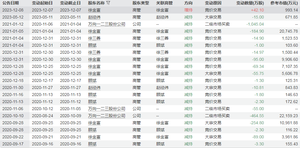 其次,徐金富此前也进行过较大规模的减持。比如2020年下半年,他便分别在9月、12月通过大宗交易、竞价交易进行过多笔减持,单笔减持金额普遍在数千万元至上亿元之间不等,对公司股价的阶段性冲击更大。