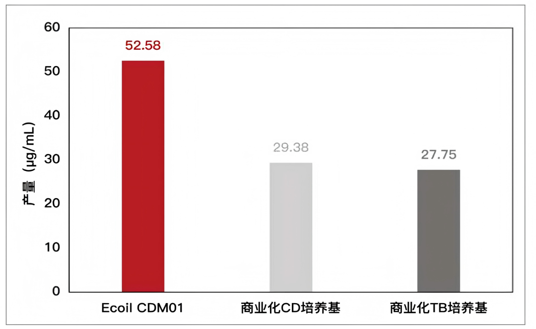 本案例分别采用Tofflon Ecoil CDM01微生物培养基、商业化CD培养基对Stbl3进行培养,数据显示Stbl3菌株生长水平:0D600与进口商业化CD培养基的菌株生长曲线基本一致;24小时发酵终点,Tofflon Ecoil CDM01的质粒产量质粒产量可达52.58μg/mL,具有明显优势。 (Ecoil培养基在质粒培养上的核心优势可在往期推文回顾:Tobitec Ecoli CD培养基——国内首款专为mRNA药物设计)