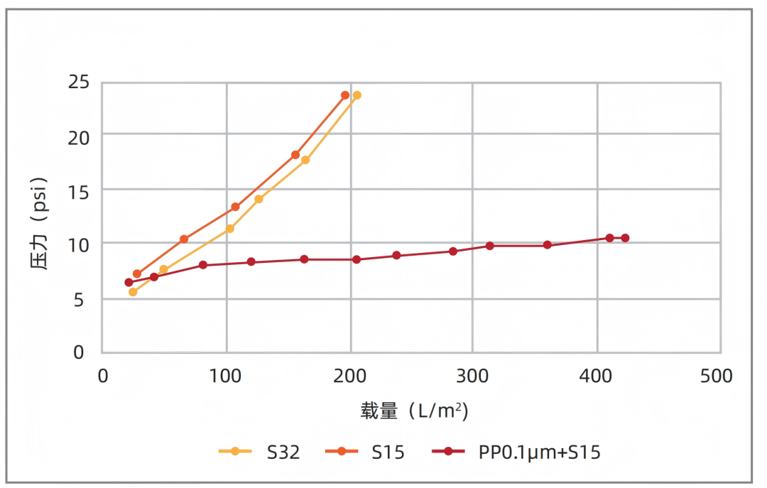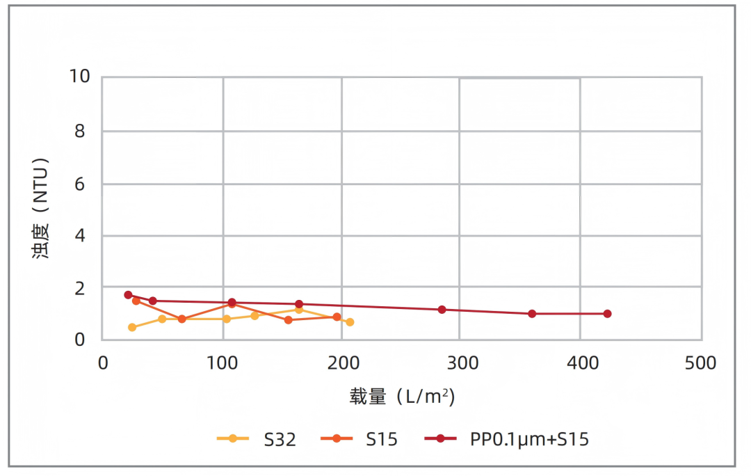 本案例分别采用Tofflon SaiClear S32、Tofflon SaiClear S15和PolySai 0.1μm + SaiClear S15深层过滤器组合,过滤190L质粒碱裂解收获液,实验数据显示最优选择为PolySai 0.1μm + SaiClear S15深层过滤器组合,过滤1小时后滤液浊度从116NTU降至2NTU以下,最终载量达到430L/m , 通过UV法(检测蛋白)计算,最终产物收率达到 76.7%,高效去除了裂解液中的固体杂质,获得高澄清度的滤液,同时保证较高的目标产物收率。