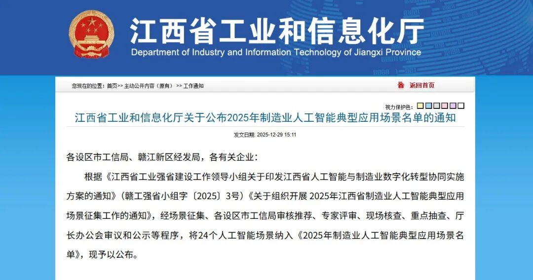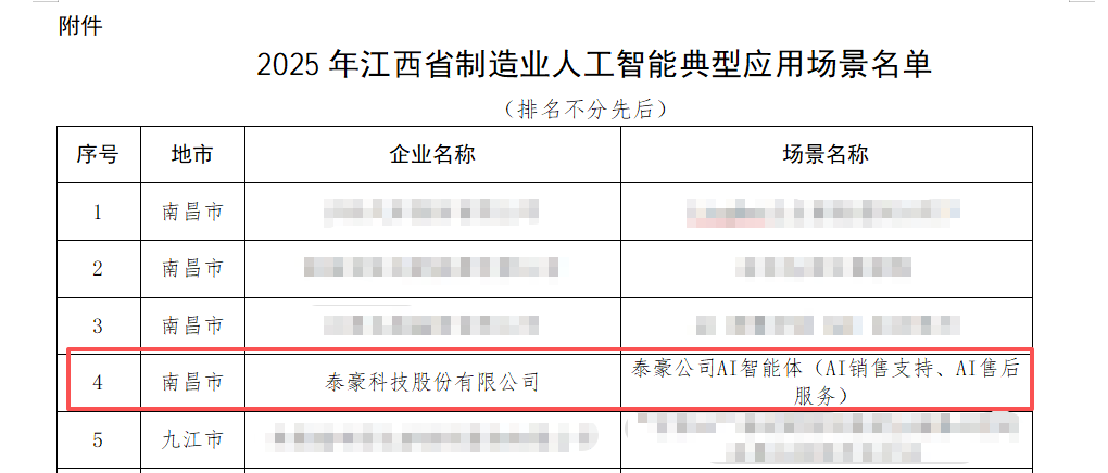 12月29日,江西省工业和信息化厅发布“2025年制造业人工智能典型应用场景名单”,泰豪公司AI智能体(AI销售支持、AI售后服务)成功入选。