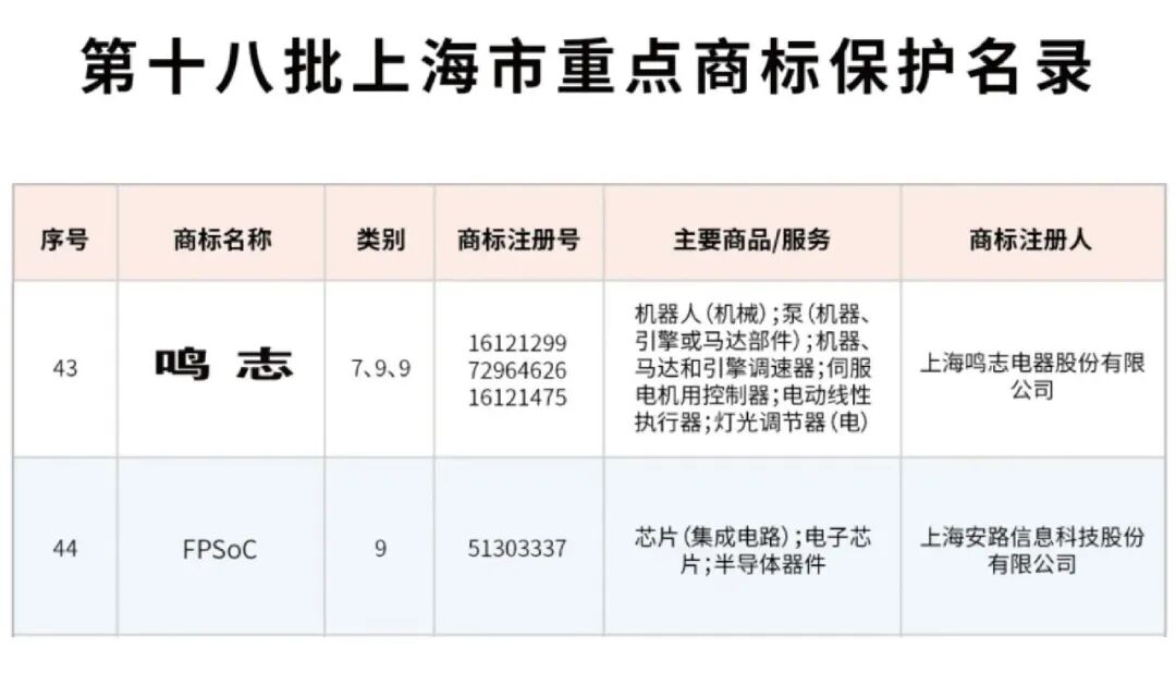 近日,上海市知识产权局正式发布《第十八批上海市重点商标保护名录》,上海鸣志电器(603728)股份有限公司旗下核心商标——“MOONS’”与“鸣志”成功入选,标志着公司在知识产权保护与品牌建设方面再获重要认可。