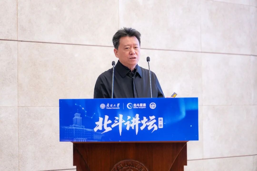 方勇纯代表学校向长期以来关心、支持南开大学发展的各界人士表示感谢。他高度评价了周儒欣带领北斗星通积极服务国家战略、深耕卫星导航产业取得的一系列突出成果。他说,数学校友分会是连接南开与大数学学科校友的重要桥梁,希望以“北斗讲坛”为纽带,推动北斗产业与人工智能深度融合,持续不断深化南开“新工科”建设,促进“校友生态”融合,吸引更多校友回到南开、支持南开,为中国式现代化建设贡献南开智慧、提供南开方案。