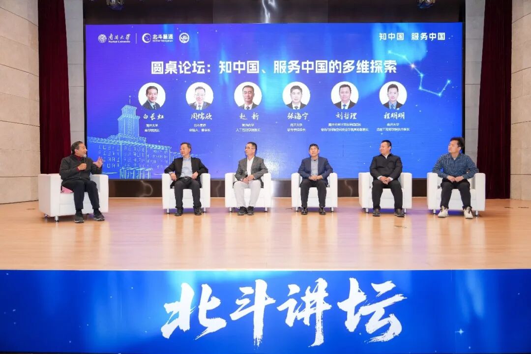 圆桌论坛环节由南开大学商学院院长白长虹主持,周儒欣与南开大学人工智能学院院长赵新,软件学院院长张海宁,计算机学院院长、密码与网络空间安全学院常务副院长刘哲理,卓越工程师学院执行院长程明明围绕“知中国,服务中国的多维探索”展开深度对谈。
