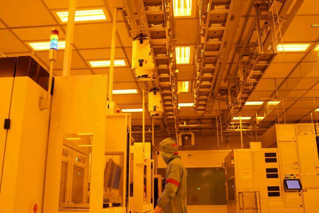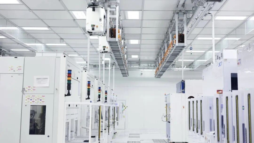 智能化天车系统高效运行,机械臂精准挥舞,晶圆载具在轨道上平稳流转,一幅科技与制造深度融合的生动图景跃然眼前。
