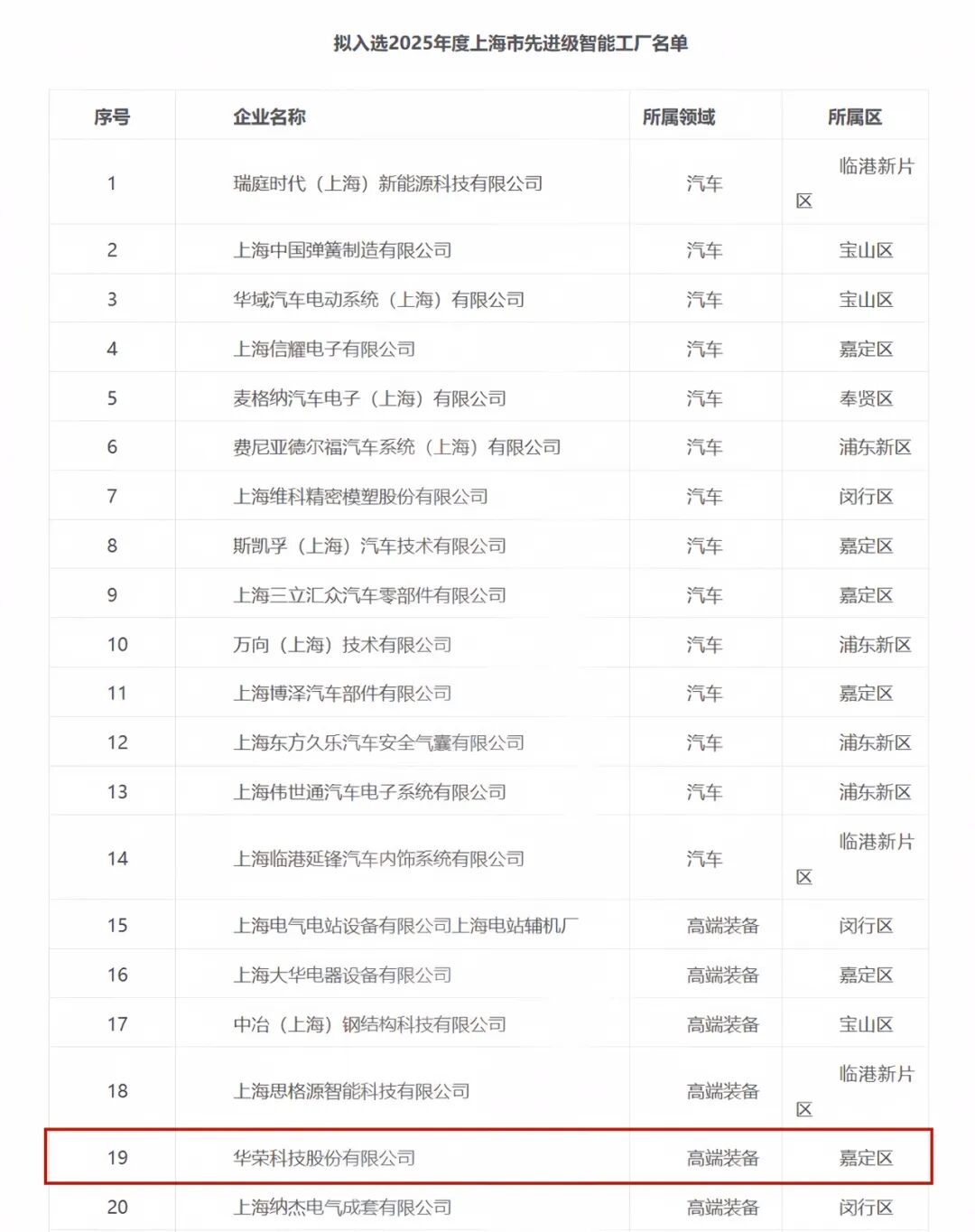 华荣股份获评上海市先进级智能工厂