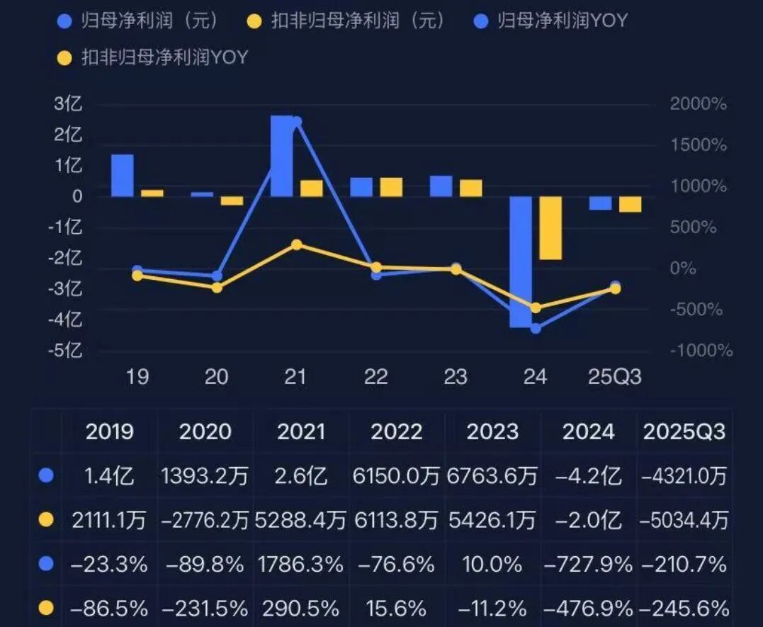 但风云君统计了一下,公司2024年第三季度起算,到2025年三季度,累计亏损4.14亿。
