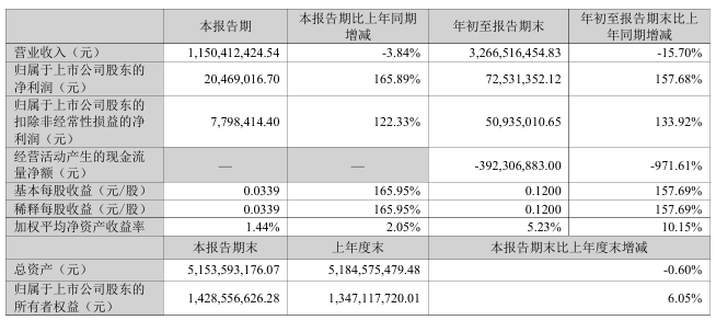 业绩方面,得润电子前三季度实现营业收入32.67亿元,同比下降15.7%;归属于上市公司股东的净利润为7253.14万元,同比增长157.68%。